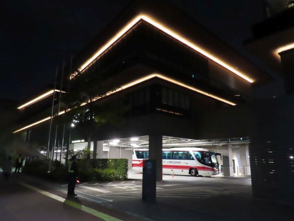 終点のSORANO HOTELには20時35分に到着した。バスはホテルの敷地内に到着した。