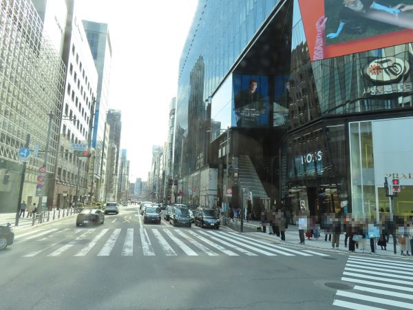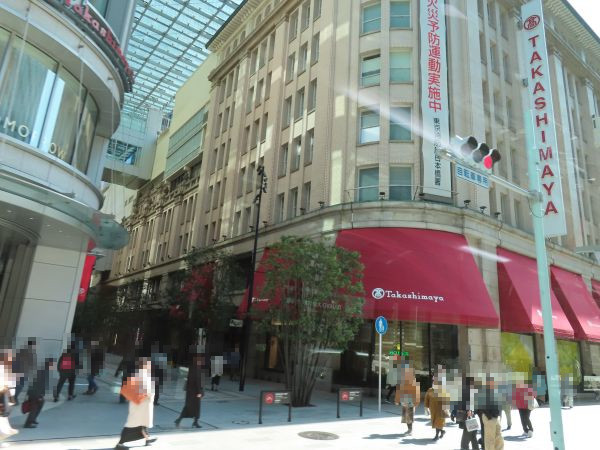 日本橋交差点を右折、日本橋高島屋に到着する。