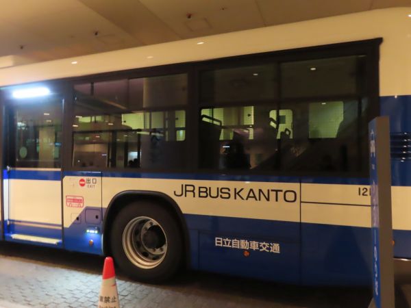 定刻を3分ほど遅れて13時に到着したバスは、ジェイアールバス関東アライアンスカラー車両での運行であった。2026年3月1日から、JRバス関東が運行していた高速バス「東京駅~ムーミンバレーパーク線」の運行が、JRバス関東のアライアンス運行により日立自動車交通が運行を担当することになり、そのPRの一環として、1台にこのラッピングが施されたという。