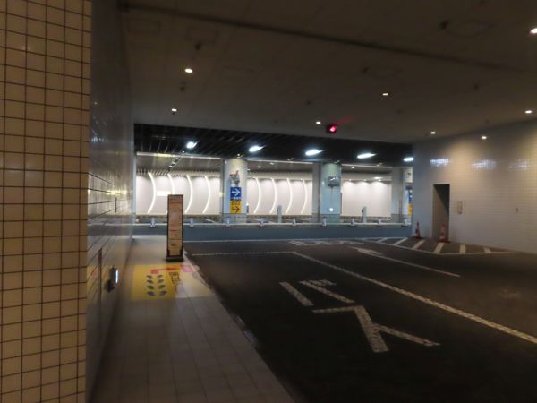 バスは、左折してこの通路を進み、晴海トリトンスクエア内にあるバスターミナルに到着する。