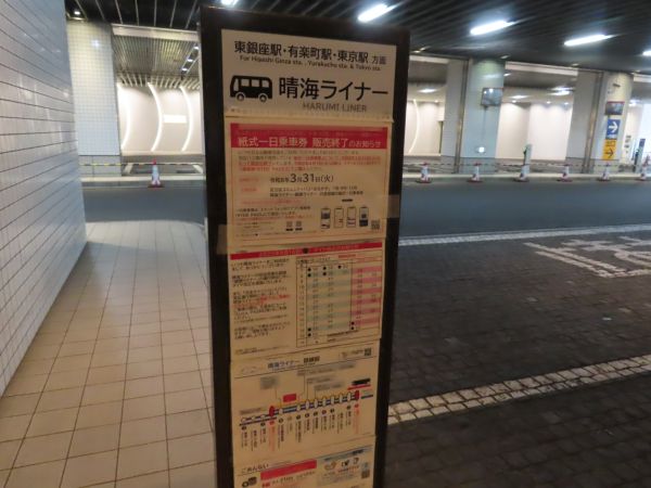 2026年3月7日土曜日。今回は、12時57分に東京駅八重洲北口を出発する「晴海ライナー」の晴海トリトンスクエア行きに乗車する。
