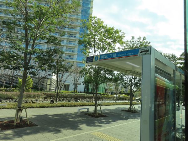 最初に晴海一丁目に停車する。東京BRTの晴海BRTターミナルも近い。