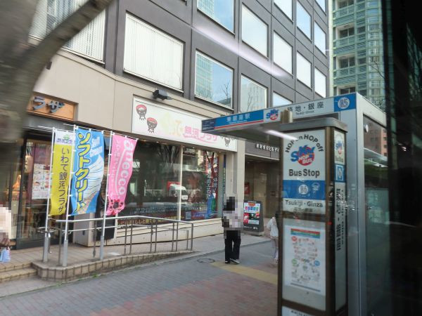 黎明橋、勝鬨橋を渡り、東銀座駅には14時35分に到着した。晴海通り沿い、岩手県のアンテナショップ「いわて銀河プラザ」の目の前に停留所がある。