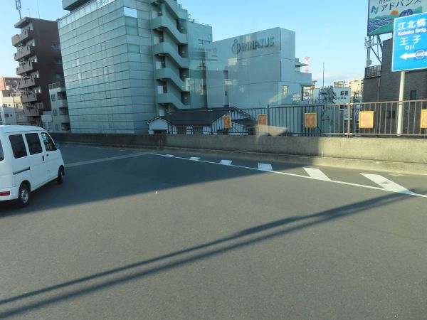 荒木田交差点で都道313号尾竹橋通りに入り、尾竹橋で隅田川を渡る。ここで荒川区から足立区に入る。