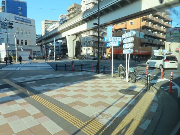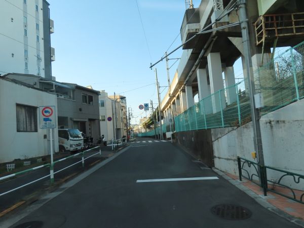 田端新町一丁目交差点で、都道58号尾久橋通りに入る。上には日暮里舎人ライナーの高架がある。このすぐ先で、バスは北区から荒川区に入る。