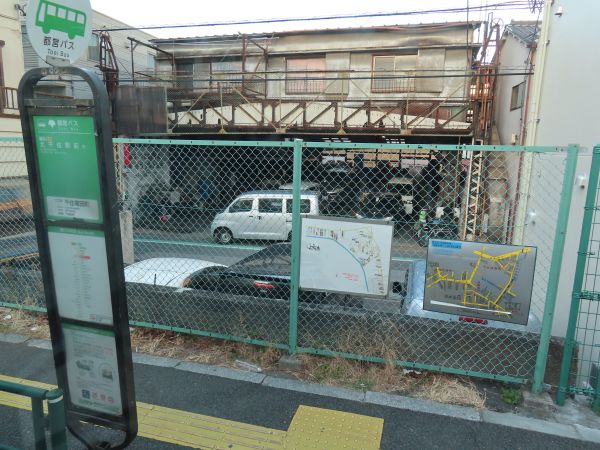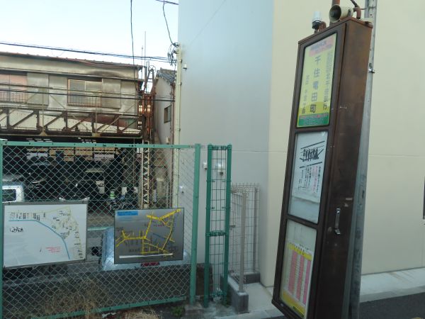 旭電化通りに入り、16時34分に都立大荒川キャンパス前に到着した。通りの名称である旭電化とは旭電化工業(現・ADEKA)のことで、かつては当地に旭電化工業尾久工場があった。都立大荒川キャンパスや近隣の尾久の原公園などは、工場の跡地に整備されたという。