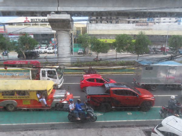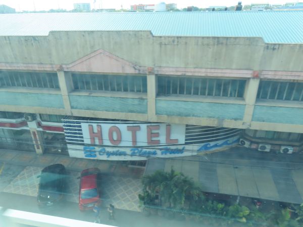ホテルの目の前に高架線があり、そこをLRT1号線が走っている。下記のホテル外観は、LRTから撮影したものである。