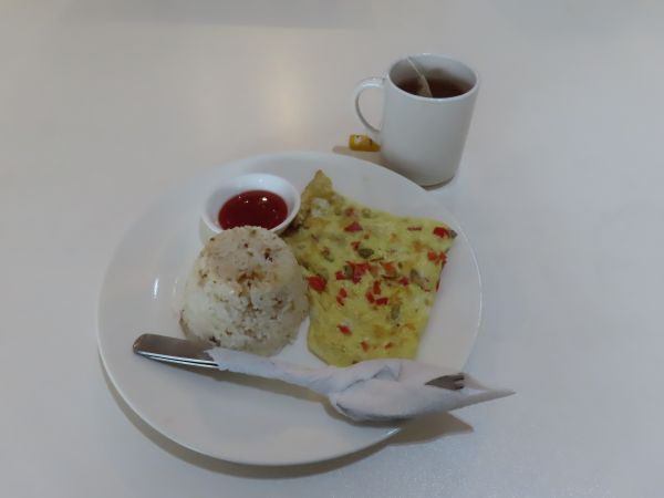 オムレツを注文したところ、オムレツと炒飯のセットが来た。飲み物はコーヒーか紅茶かとのことで、紅茶をお願いした。