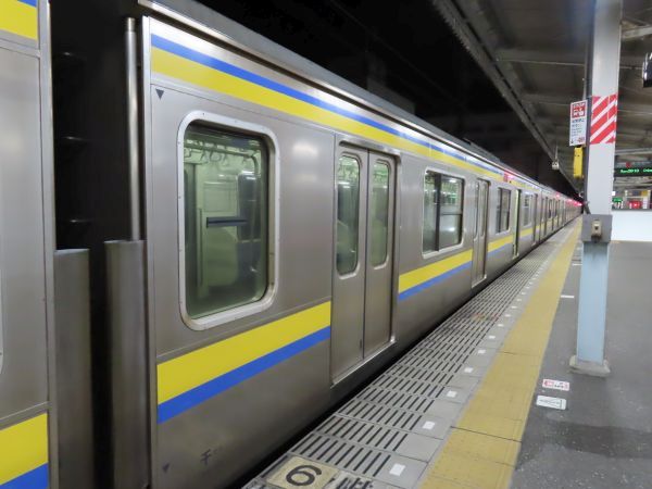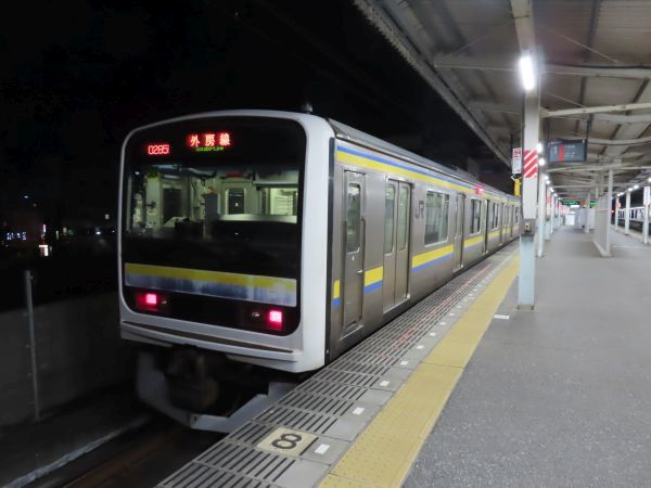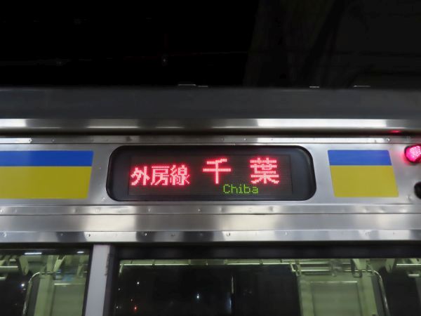 20時10分発千葉行きは、209系2100番台4両編成を2編成繋いだ8両編成での運行であった。