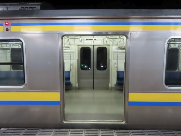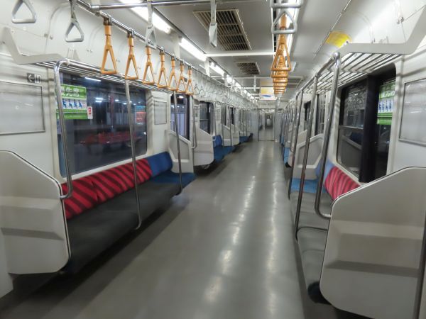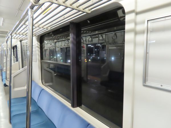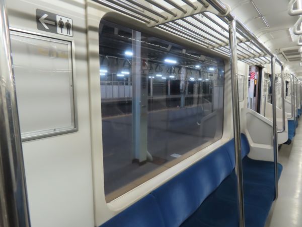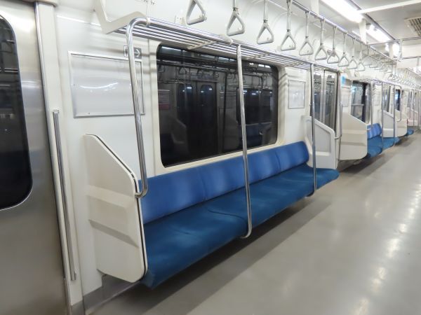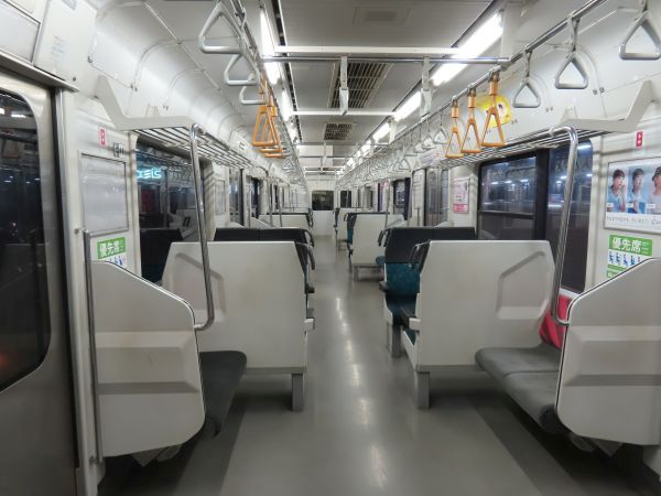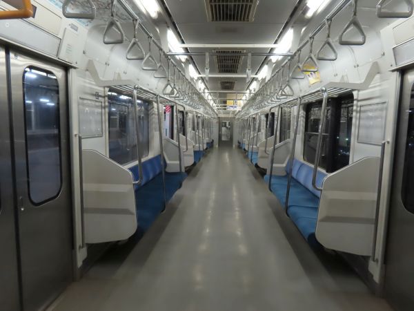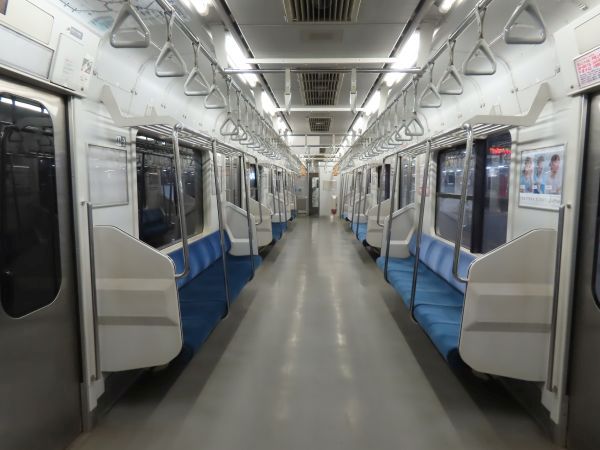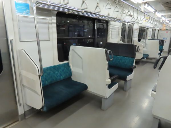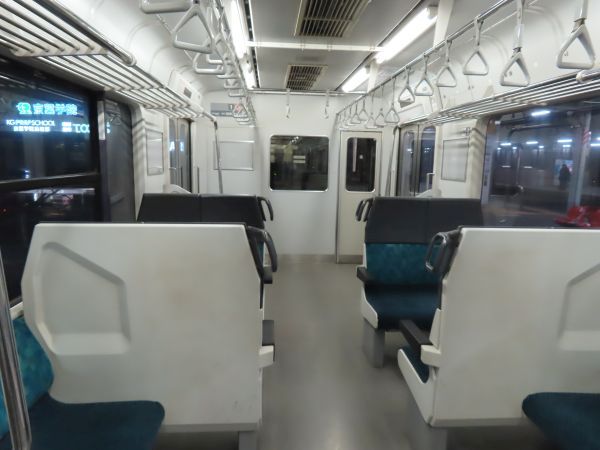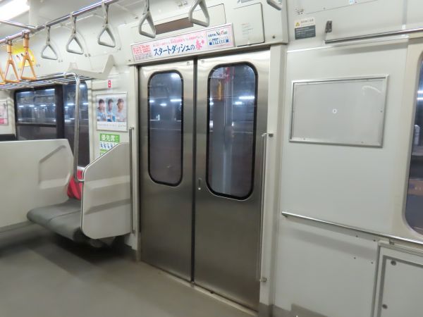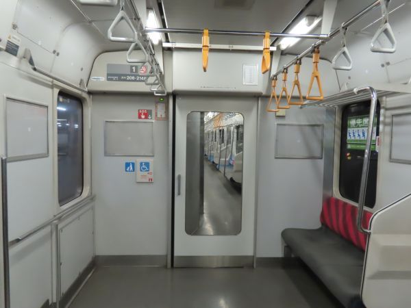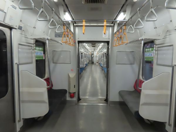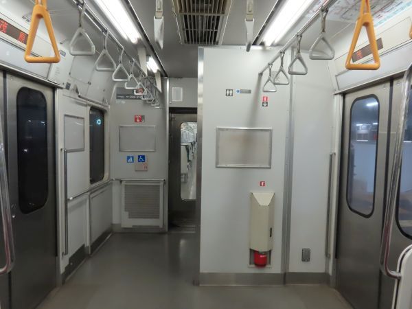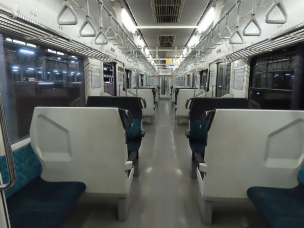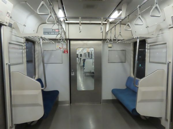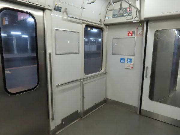 この車両のドアは押しボタン式ではない。始発駅では、車内温度の調整のため4ドアのうち1ドアのみが開けられている。