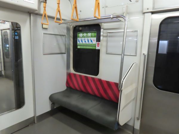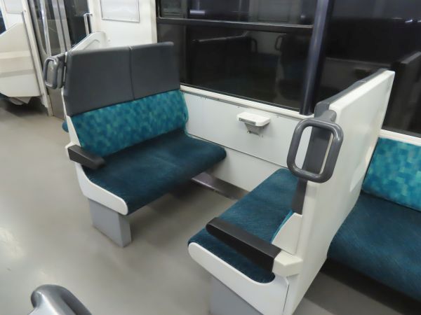先頭車の車端部には優先席と車いすスペースがある。