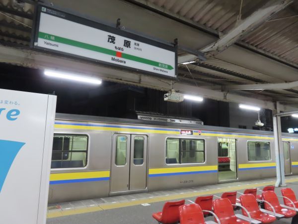 列車は、出発20分前には茂原駅の1番線に到着していた。この列車が出発する前の20時01分に快速東京行きもあるため、20分前の時点では客は数名しか乗車しておらず、誰もいない車両もある。
