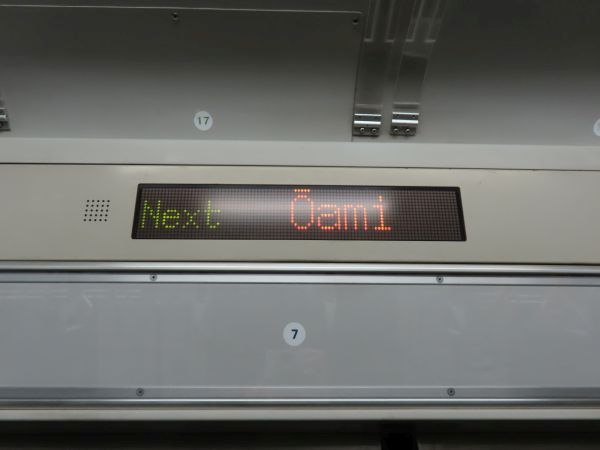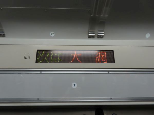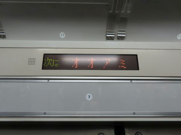 次駅案内は漢字、カタカナ、ローマ字で表示される。