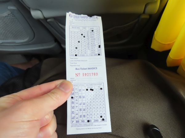 車掌が切符を売りに来た。クラークまで430ペソである。支払いは現金のみであった。