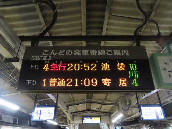 2025年9月20日土曜日。小川町から、20時52分発の急行池袋行きに乗車する。