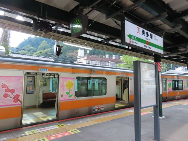 新宿を12時20分に出るJR中央・青梅線の青梅特快に乗車して、終点の青梅まで乗車する。青梅には13時20分に到着した。8分の乗り継ぎ時間で、13時28分発の青梅線普通奥多摩行きに乗り換える。