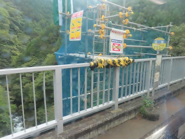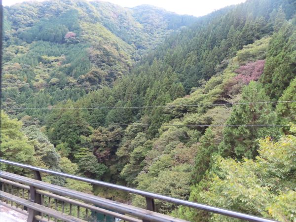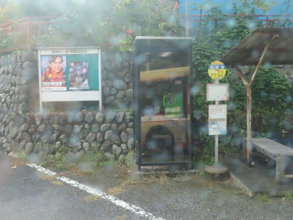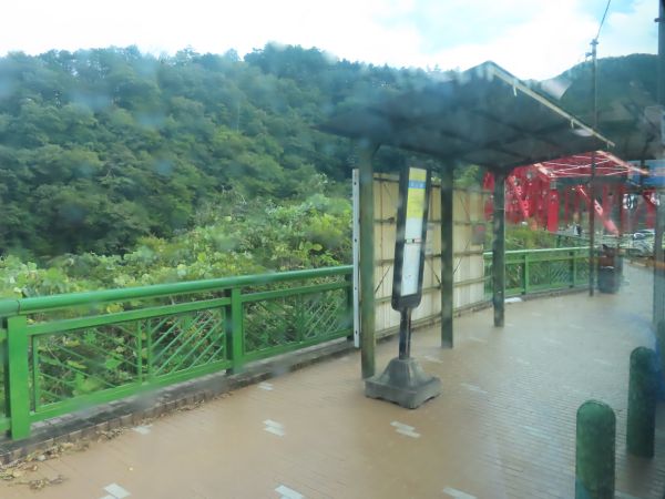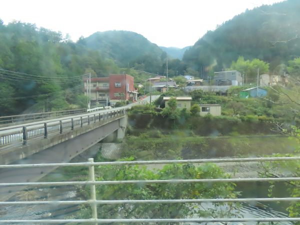 次の停留所を案内する放送では、庄の指から先は東京都シルバーパス適用外である旨が流れた。庄の指を出ると、次は金風呂である。変わった地名が続く。これより山梨県に入りますと放送が流れ、15時01分に山梨県小菅村に入った。