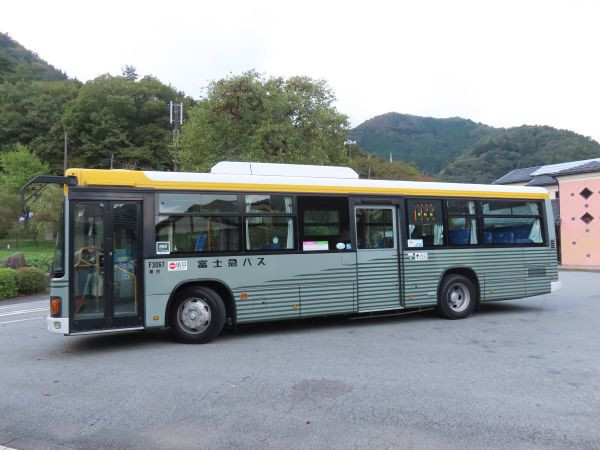 その前の15時20分に、富士急バスの上野原駅行きが出発していった。小菅の湯からは、中央本線の大月駅へは毎日、上野原駅へは繁忙期の土休日限定でバスがある。