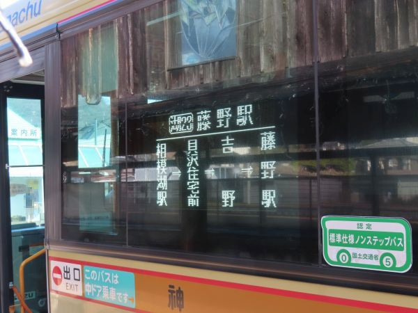 藤野駅発のバス路線は、神奈川中央交通の相模湖駅行き、和田行き、奥牧野行きと、富士急バスの名倉循環がある。