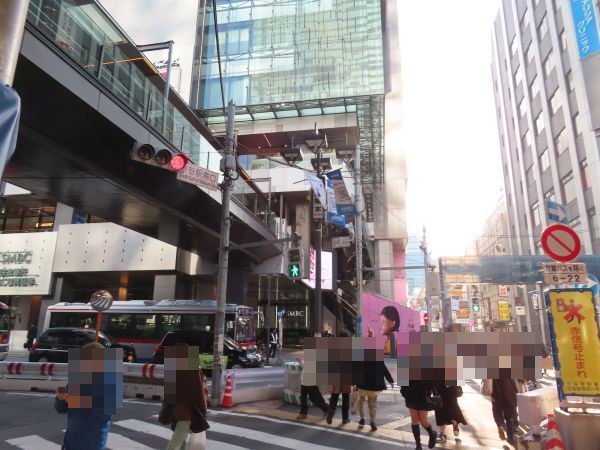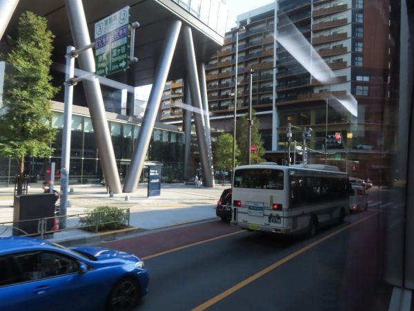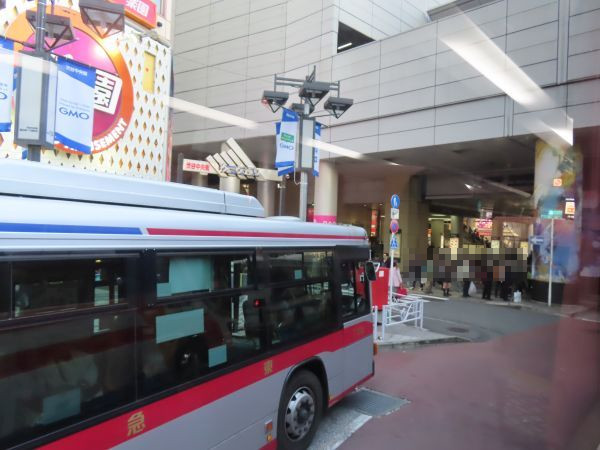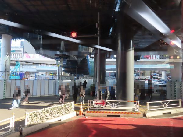 渋谷駅を出ると、渋谷駅前でUターンする。このあたりは人が多く、警備員がバスを誘導する。