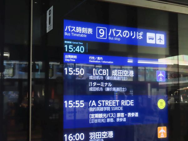 ただ、今回乗車する渋谷の場合、渋谷駅に関しては全く同じ停留所からの出発で、便によって値段が異なるという形になっている。厳密にいうならば、東京空港交通と東急バスが運行するリムジンバス「渋谷-成田空港」線は、渋谷側では渋谷エクセルホテル東急(渋谷マークシティ)、渋谷駅(渋谷フクラス)、セルリアンタワー東急ホテルで発着し、成田空港までは3,600円である。一方の低価格高速バスである「【LCB】渋谷駅-成田空港」線は、渋谷駅(渋谷フクラス)で発着し、運賃は2,500円である。