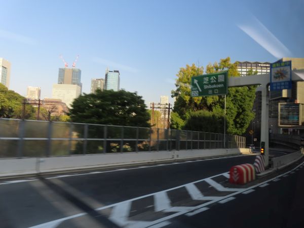 芝公園出入口付近を通過する。
