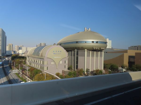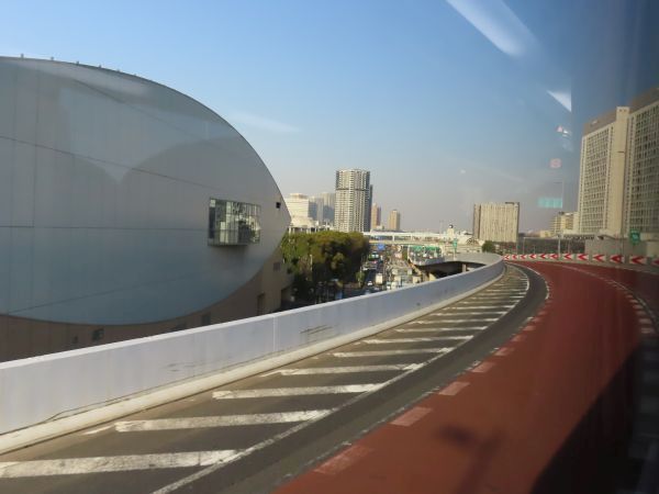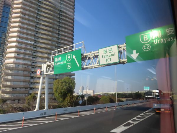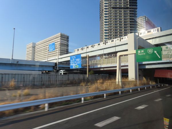 16時13分、有明JCTから首都高速湾岸線に入る。特徴的な外観の建物は、東京都下水道局の有明水再生センターである。