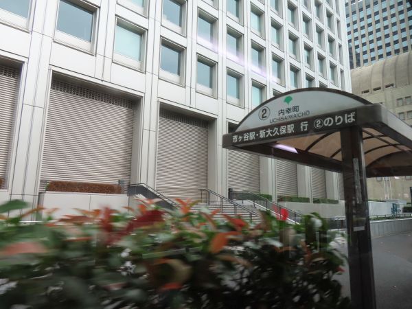 内幸町の停留所は国会通り、富国生命保険の本社前にあり、向かい側は日比谷公園である。
