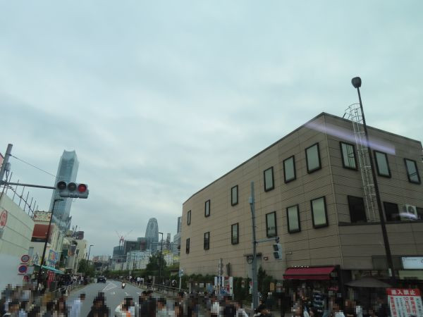 JR山手線の新大久保駅付近を通過する。