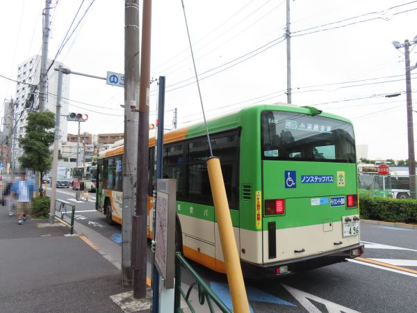 降車停留所の向かい側に都営バス小滝橋自動車営業所がある。ここまで乗車してきたバスも、営業所内に入っていった。