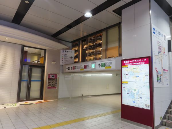 今回は、新宿駅西口(京王百貨店前)から乗車することにした。JR線を新宿で降りた後、階段を降りて、京王線との乗り換え改札の方へ進む。