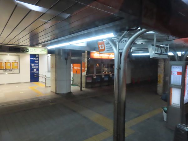 5時30分発の成田空港行きは、新宿駅西口(京王百貨店前)が始発で、出発5分前に到着した。改札を経て乗車する。新宿発便は座席定員制の自由席であった。