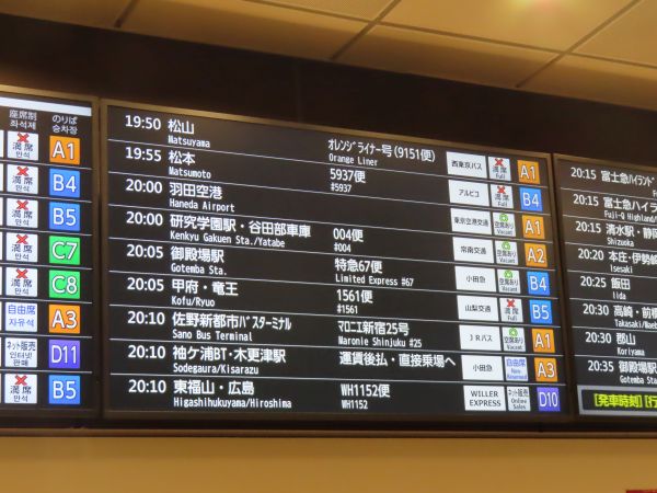 2025年9月19日金曜日。19時すぎにバスタ新宿で時刻表を見ていると、20時発の谷田部車庫行きの便が目に入った。前述の通り、この路線には以前にも乗車しているが、運行休止が決まったということで、最後にもう一度乗っておくことにした。