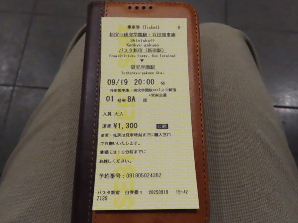 2025/9/19:常南交通:谷田部車庫・研究学園-新宿駅線:バスタ新宿→研究学園駅