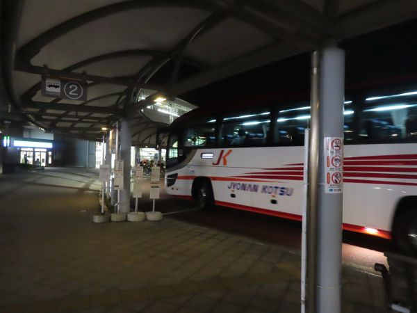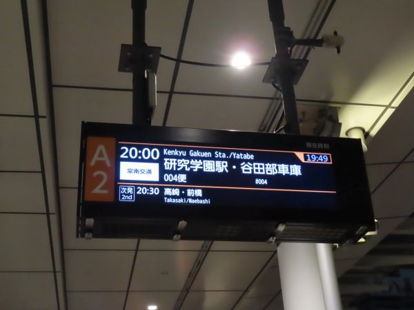 出発10分前の19時50分、A2番乗り場に到着して乗車開始となる。