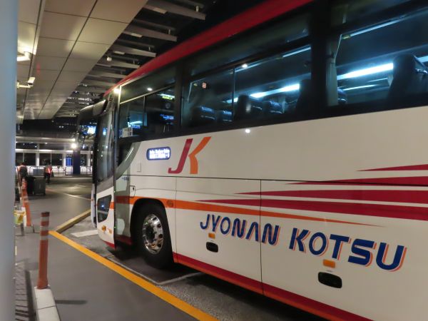 19時40分頃、常南交通の車両がバスタ新宿4階の待機スペースに到着した。