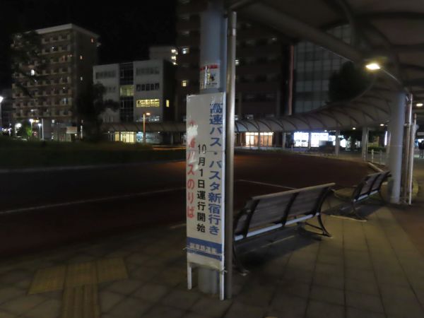 定刻20時、バスタ新宿を出発した。客は僅か5名であった。これであれば廃止もやむを得ないと思う。
