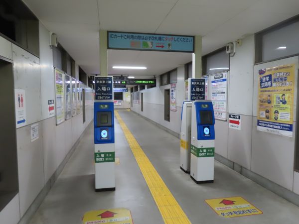東武鉄道のホームへ向かう途中に、交通系ICカードの端末がある。