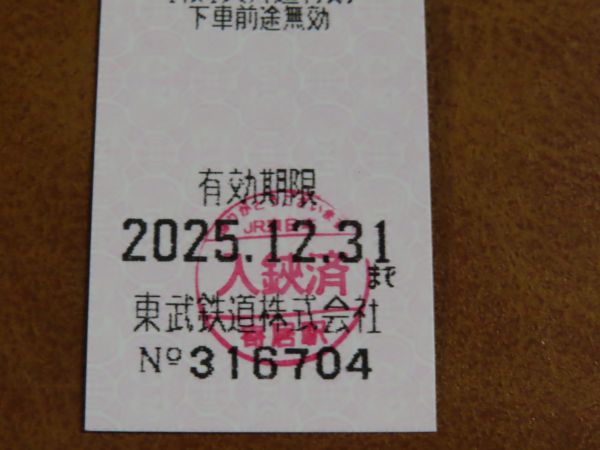 今回は東武鉄道の株主優待券で乗車したが、駅員がスタンプを入れてくれた。スタンプには「JR東日本」の印が入っていた。